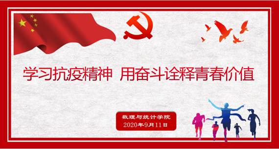9月11日,3044永利集团通过腾讯会议为全院研究生、本科生开展“开学第一课”教育,数理外国语联合党委钱慧敏书记以《学习抗战精神,用奋斗诠释青春》为题,分享在疫情防控中的英雄事迹和青年人应该思考的四个问题,和同学们一起学习伟大抗疫精神,坚定理想信念、涵养家国情怀、砥砺奋斗精神,树立正确的世界观、人生观和价值观。