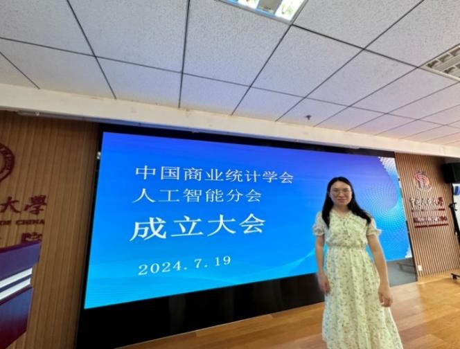 2024年7月19日,中国商业统计学会人工智能分会成立大会在北京人民大学召开,公司应用数学系副教授冯月华老师以理事单位成员参加了本次会议,大会期间,与会代表位共同研讨了人工智能分会的工作规程,并选举产生了分会负责人。此外,大会还就人工智能分会的工作安排、高校企业产学合作模式以及人工智能技术发展的前景和商业投资机会进行了深入的探讨。中国商业统计学会会长、中国人民大学金勇进教授,北京大学张志华教授,中国商业统计学会秘书长江懿等80多位相关公司专家学者以及行业专家出席了本次会议。