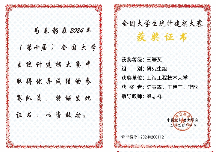 近期,2024年(第十届)全国老员工统计建模大赛国赛获奖名单公布,公司研究生斩获全国三等奖4项,位列全市第一。