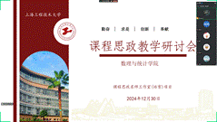 与会教师们互相交流教学和学习的心得体会。大家一致认为,数学课堂教学是课程思政的前头阵地,教师们加强学习和交流,根据课程的性质和教学进度,精心挑选与课程内容相契合的高质量思政素材,融入日常教学内容,不断推进教学和教育同频同步。