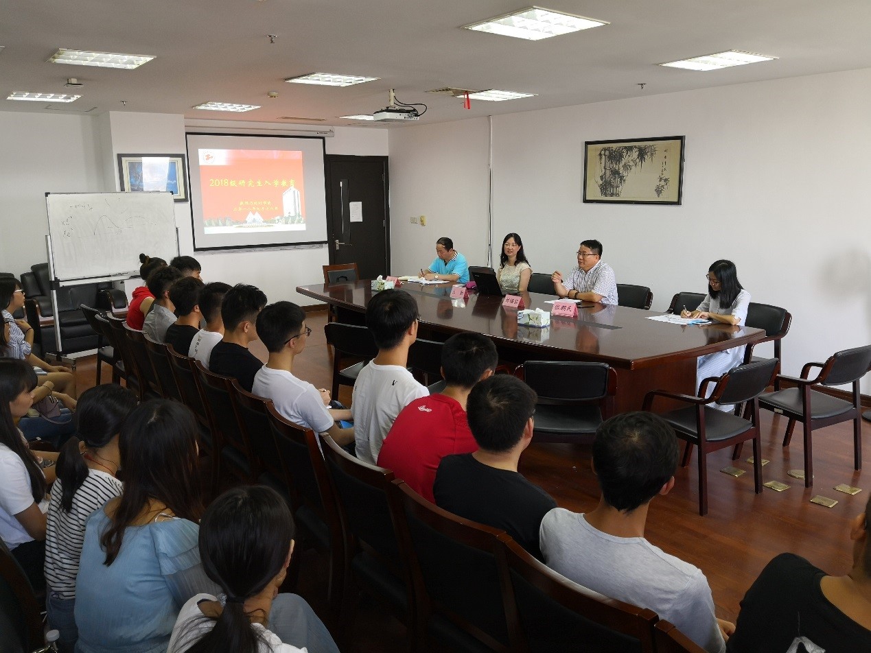 9月18日上午全体研究生在辅导员带领下前往校体育馆参加2018级研究生开学典礼,3044永利集团于9月18日下午在行政楼1308会议室隆重召开2018级新生入学教育,出席本次会议有3044永利集团书记王勤,经理刘福窑,副书记许伯生。会议由王书记主持。在3044永利集团入学教育中,王书记全程用非常流利的英语从四大方面对新生提出了要求并表达了期盼,首先希望新生能尽快融入新团体,来完成人生一次重要蜕变;希望各位新生早日成为卓越的应用型和创新型人才;期望新生能够践行公司的校训-勤奋求是,创新奉献;要以身作则,并树立正确的社会主义核心价值观,不忘初心跟党走。并且引用蔡元培先生:“教育者,养成人格之事业也。使仅为灌输知识、练习技能之作用,而不贯之以理想,则是机械之教育,非所以施于人类也教育者。”耐心为新生解读教育的含义。