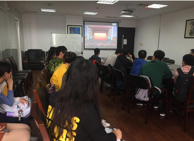 2018年10月15日下午,公司党员同学和其他专业研究生于行政楼礼堂报告厅,其他同学在行政楼1307会议室,一起参加了于北京人民大会堂同步直播的“2018年全国科学道德和学风建设宣讲教育报告会”。