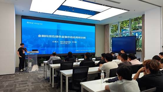 金仕达公司人力资源部金莺女士、金仕达研究院万宇雷博士作为企业指导老师进行了现场教学和指导。金莺女士向同学们详细介绍了金仕达公司的发展历程,展示了金仕达公司在帝喾大模型、因果AI等前沿领域的创新成果与发展实践。万宇雷博士作题为“金融科技在绿色金融中的应用和创新”报告,对金融科技领域的发展前景、现存痛点和未来趋势进行了分享,也向同学们展示了资产估值定价,风险计量,AI大模型等在金融领域的应用场景。