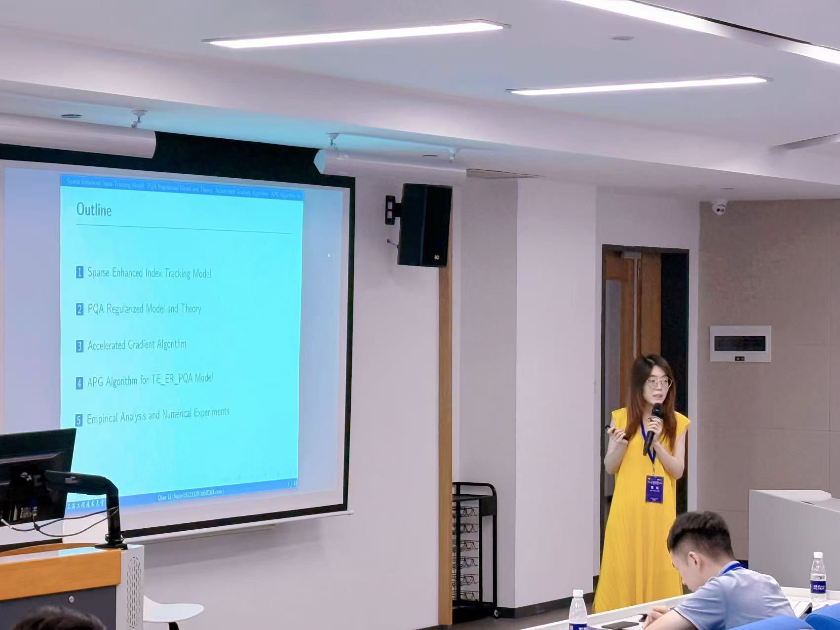 永利集团数理与统计学李倩副教授带领田浩楠同学参会。李倩老师以《A Sparse Enhanced Indexation Model with Non-Convex Regularization: Theory, Algorithms, and Empirical Superiority》为题做主题报告,提出了一种新型稀疏增强指数化模型(TE ER PQA),在理论上保证了最优性和稀疏性,实证中在多个市场阶段均有显著优越性。