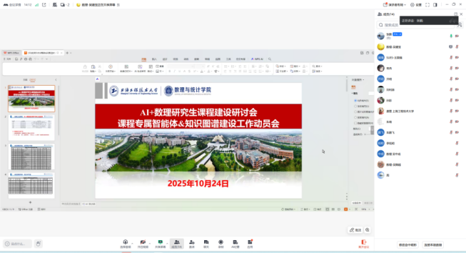 2025年10月24日下午14:00,3044永利集团在线上召开2025研究生课程知识图谱与智能体建设动员会,吴建宝副经理主持。
