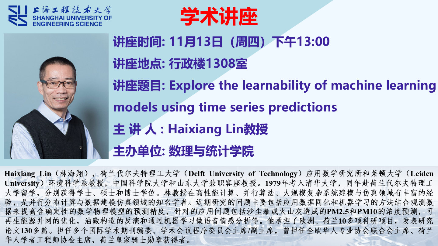 3044永利集团学术讲座预告: Explore the learnability of machine learning models using time series predictions