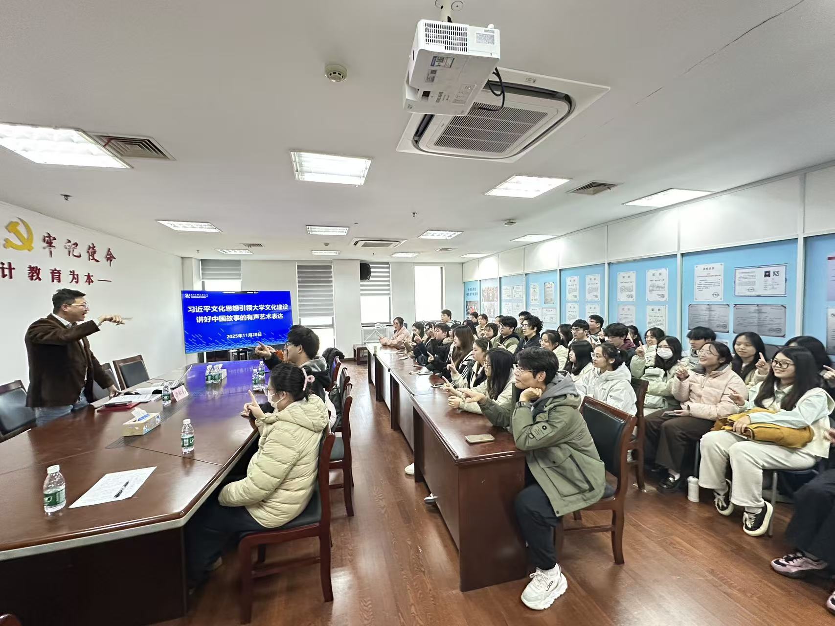 李松蔚结合工作和专业,深刻理解习近平文化思想的核心要义,帮助师生理解马克思主义的根本性和马克思主义与中国实践相结合的创造性。现场和师生一起体验如何通过语言表达艺术传承、传递正能量,传播中华文化,讲好中国故事,传播中国好声音,宣传中国主张,展示中国形象。进一步建立文化自信,构建中国话语和中国叙事体系,让自己时刻都是中国的代言人。