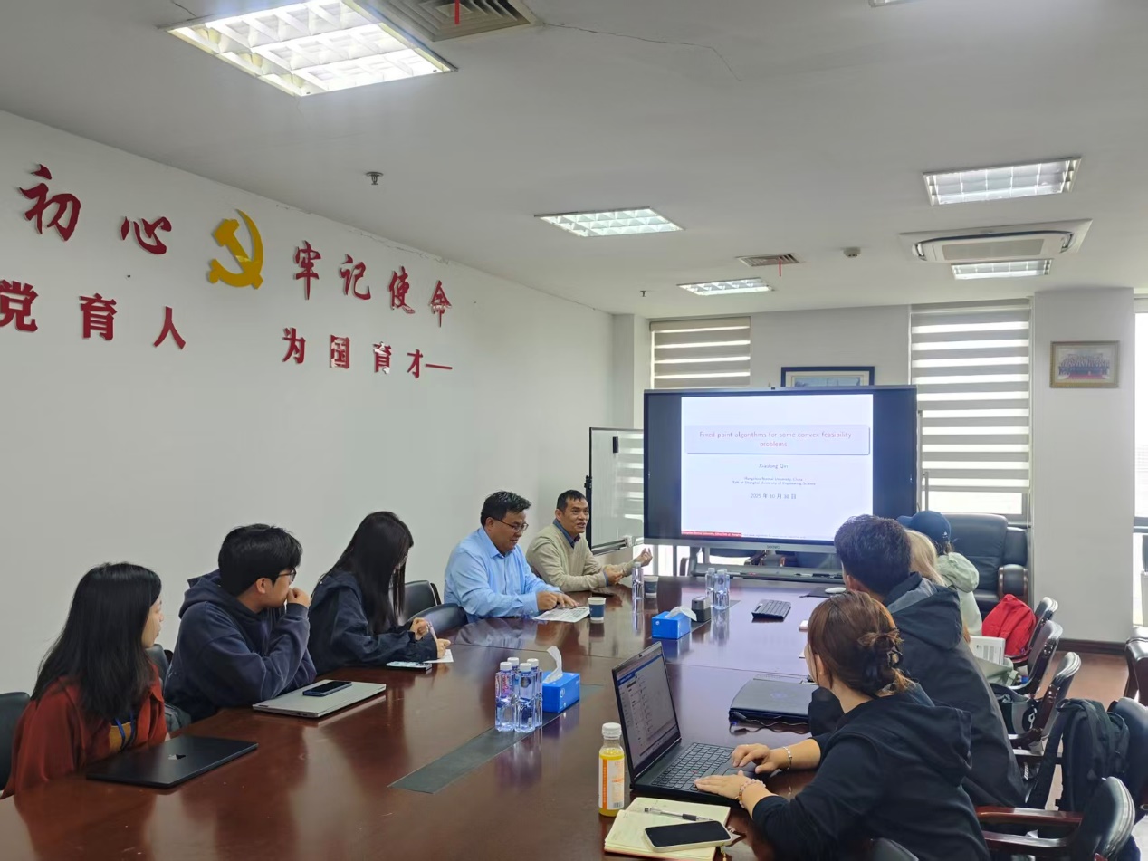 为促进学术交流、推动优化理论与应用前沿研究,3044永利集团于2025年10月30日13:00–14:00在行政楼1308会议室成功举办学术报告会。本次活动由公司经理王国强教授主持,特邀知名学者秦小龙教授作了题为“Fixed-point algorithms for some convex feasibility problems”的专题报告。