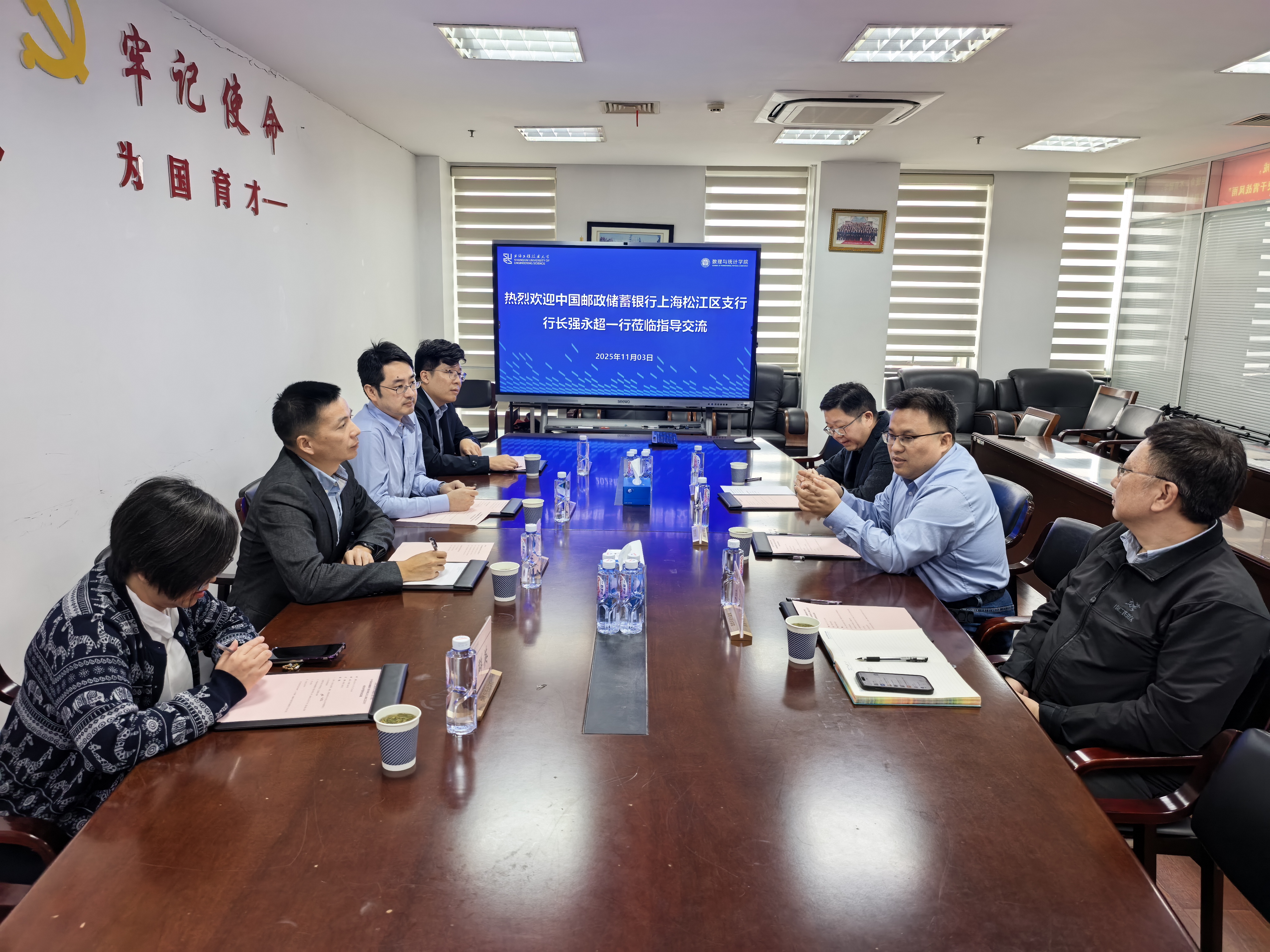 11月3日下午,中国邮政储蓄银行股份有限公司上海松江区支行行长强永超一行莅临公司洽谈交流合作,推进双方在人才培养、实习就业的深度合作。3044永利集团经理王国强教授、研究生院副经理李路教授、副经理吴建宝副教授参加会议。