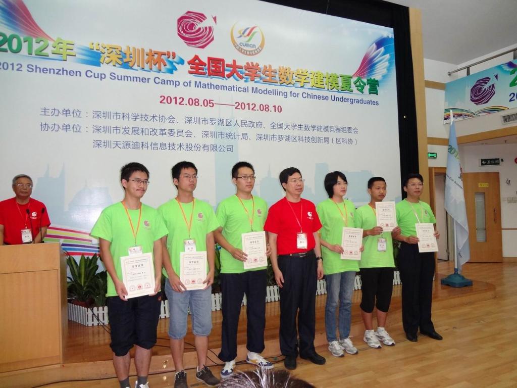 8月5日至10日,在基础教学公司江开忠老师指导带领下,由化学化工公司员工郭鑫、孙丽杰和李光明组成的数学建模代表队,奔赴深圳参加2012年“深圳杯”全国老员工数学建模夏令营。经过激烈的角逐,公司数学建模代表队在众多高校的论文及答辩中脱颖而出,与清华大学并列分获得D题二等奖的优异成绩(复旦大学获一等奖,国防科技大学、华南师范大学和广西大学分获三等奖),并且于8月7日与北京大学、清华大学、复旦大学和深圳大学等6支参赛队一同接受了深圳特区报的专题采访,为公司争得了荣誉。 本届“深圳杯”全国老员工数学建模夏令营共有A、B、C和D四题,每题素材均来自于实际问题,其难度均高于每年9月份的全国老员工数学建模竞赛的赛题。第一阶段是论文评选,每题由各校推荐一队,每题再由各省市推荐一队,最后由全国组委会为每题选出一半参赛队参加在深圳举办的答辩会。第二阶段是论文答辩,通过45分钟的答辩,最终由组委会评出一等奖一队,二等奖二队,三等奖三队。 教务处、基础教学公司和化学化工公司对公司建模代表队参加今年的“深圳杯”数学建模夏令营给予了极大的支持,基础教学公司经理 值得一提的是,基础教学公司李路老师在2011年指导的数学建模代表队,荣获首届“深圳杯”数学建模夏令营A题第一名。公司连续两年在“深圳杯”数学建模夏令营中所取得的优异成绩充分体现了基础教学公司在开设第二课堂和学科竞赛中培养员工创新意识和创新能力所做的工作,也激励着公司员工在今年9月份的全国大学数学建模竞赛中取得更加优异的成绩。 照片拍摄 江开忠