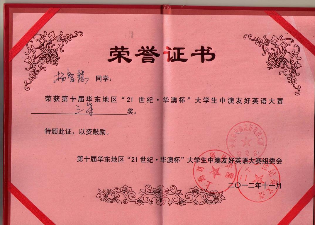 11月24日下午,在上海对外贸易公司进行第十届华东地区“华澳杯”老员工中澳友好英语大赛中,永利集团服装公司的杨智慧同学在比赛中克服种种挑战,最终取得了三等奖的优异成绩。 华澳杯英语大赛主要分为三个部分:定题演讲“Australia With My Eyes”、即兴演讲以及Australia in Brief 知识问答环节。其中,知识问答环节是最具有挑战性的。从10月中旬开始,公司选手积极准备组委会下发的近50页的澳洲知识手册,其内容涉及澳洲政治、经济、地理、人文等各个方面。由于赛制的特殊性,要求选手对知识手册内容具有相当高的熟悉程度,因此难度较大。 为了准备本届比赛,公司基础教学公司领导,尤其是外语教学部领导高度重视,派出了张蓓老师、聂慧老师和吴国勇老师对选手进行定期的辅导培训,重点培训员工的演讲技巧、措辞、思维表达等方面的能力,使其在演讲综合能力方面得到一定的提高。 本次比赛促进了各高校相互了解,展现了公司在英语教学方面的水平,提升了公司的知名度。希望明年有更多的员工参与到这项活动当中,展现自己的风采,为提高公司整体英语教学应用水平而努力。 自2003年开始,华东师范大学澳大利亚研究中心主办的“华澳杯”中澳友好英语大赛已成为国内一项著名的年度英语竞赛。每年,“华澳杯”在华东地区不同的院校举行,如华东师范大学、华东理工大学、上海大学、上海财经大学、东华大学等,吸引超过二十所高等院校参加比赛,参赛院校覆盖上海、江苏、浙江、安徽、福建、山东、江西等省市,多家主流媒体,包括《中国日报》、《新民晚报》、上海电视台,以及国外网站等对本赛事进行报道,在国内高校和澳大利亚研究界中享有较高的知名度和影响力。 据悉,公司从2008年开始组织员工参加华东地区“华澳杯”老员工中澳友好英语大赛,至今已经连续参加五届比赛了,每次都有不错的成绩。