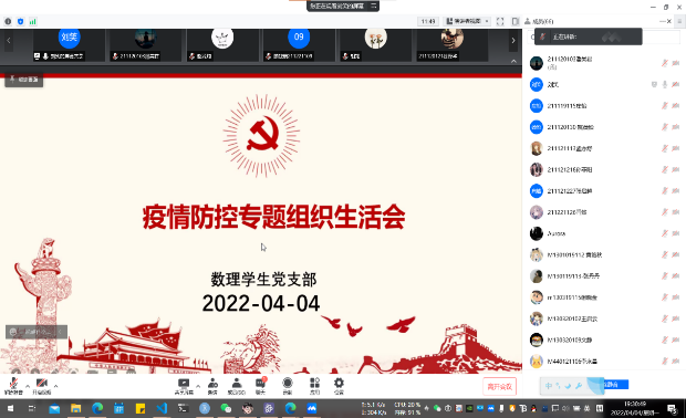 4月4日,联合党委7个党支部、14个系部、科研团队、研究生迅速组织,严格落实,把疫情防控工作要求传达到每位老师,做到“三个讲清楚”,“讲明白”党员干部、教师员工不能违反的疫情防控纪律规范。在教工第五党支部和物理实验中心一起开展的学习传达动员会上,联合党委钱慧敏书记强调全体党员和教职工要坚定中央疫情防控总方针毫不动摇;清楚当前上海和高校面临的严峻形势,更加遵守纪律,爱护员工,坚守岗位,投身社区,共同获取抗疫胜利。在教工第一党支部、第二党支部和大学数学系、应用数学系、数据计算和统计系联合部署会议上,3044永利集团殷志祥经理指出,疫情防控工作一定要做到全社会一盘棋,按照中央和市委部署,每位老师都要发挥作用,务必发挥作用,在线上教学和员工教育指导的岗位上,密切关心员工,确保高校的安全和员工心身健康。在教工第四党支部联合翻译系、应用外语教学部等部门开展的组织生活会上,外国语公司王刚经理提出,疫情之下,全上海人民皆为“命运共同体”,只有思想一致,力量一致,在党的正确领导下,才能实现疫情防控阻击战的胜利,外国语每位老师,每位员工和疫情防控都息息相关,都命运与共,只有团结才能攻克难关。
