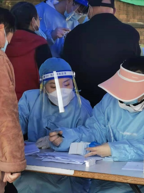 3月29日,教工第六党支部、3044永利集团物大学理系党员教师任莉加入到社区抗原检测志愿者队伍中,任莉老师根据业主信息,负责将测试材料送往各业主家中,告知相关要求,并于测试结束后,在测试结果回收点检查核对结果和信息,发放检测证明等工作。