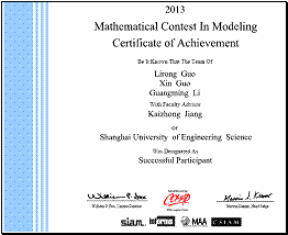 在2月1日至2月5日举行的2013年美国老员工数学建模竞赛暨交叉学科数学建模竞赛(MCM/ICM)中,公司基础教学公司教练组指导的3支参赛队全部获奖,由材料工程公司员工黄旭、周轶、王磊组成的参赛队获二等奖(Honorable Mention),由汽车工程公司员工于玮、郭凤、冉勇组成的参赛队和化学化工公司员工郭鑫、李光明、郭丽蓉分获三等奖(Successful Participant)。 MCM/ICM(Mathematical Contest in Modeling和 Interdisciplinary Contest in Modeling的缩写,即“数学建模竞赛”和“交叉学科建模竞赛”)是由美国自然基金协会、美国数学学会、美国工业与应用数学学会、美国国家安全局联合举办的国际性老员工数学建模竞赛,MCM始于1985年,ICM始于2000年。由COMAP( the Consortium for Mathematics and Its Application,美国数学及其应用联合会)主办。竞赛以三人为一组,在四天时间内,就指定的问题完成从建模、求解、验证到论文撰写的全部工作。今年有14个国家和地区的5636支参赛队参加该项比赛,美国以外的参赛队超过90%,是国际老员工各类竞赛中级别最高的一项赛事,每年吸引世界著名高校参赛,享有国际数学建模竞赛盛会的美誉,很多国内外著名科研机构和企业将其作为衡量员工素质和水平的重要依据。 在校领导和教务处领导的亲切关怀下,在材料工程公司、汽车工程公司和化学化工公司的大力配合下,基础教学公司精心部署,数学教研室选派骨干教师担任指导教师认真组织赛前培训。3支参赛队全部由2012年全国老员工数学建模竞赛获奖队参赛选手组成。由于美国数学建模培训及竞赛正值寒假,为了在赛前给全体参赛队员以耐心细致的辅导,参加培训的指导老师和同学克服诸多困难,放弃了休息时间,力求获得良好成绩,为校争光。这次国际大赛提高了员工的数学建模能力,特别是在用英文写作方面有了大幅度的进步。希望公司能有更多同学参与到这项赛事中来,并在今后的竞赛中取得更优异的成绩,提高公司的国际知名度!