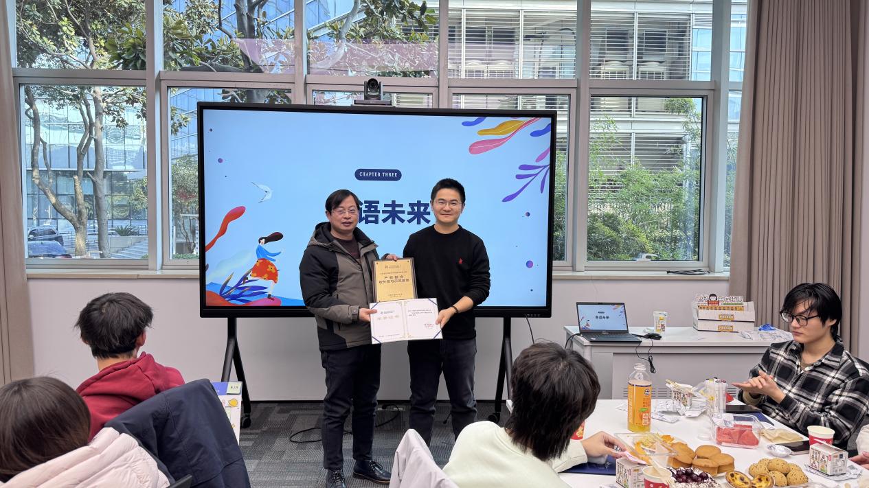 方涛主任代表公司向上海金仕达软件科技股份有限公司授予“产教融合校外实习示范基地”牌匾及荣誉证书,正式确立了双方紧密的育人合作关系。校企双方一致表示,将以示范基地为依托,持续推进实践教学与人才培养协同,进一步提升员工的专业能力与实践素养。