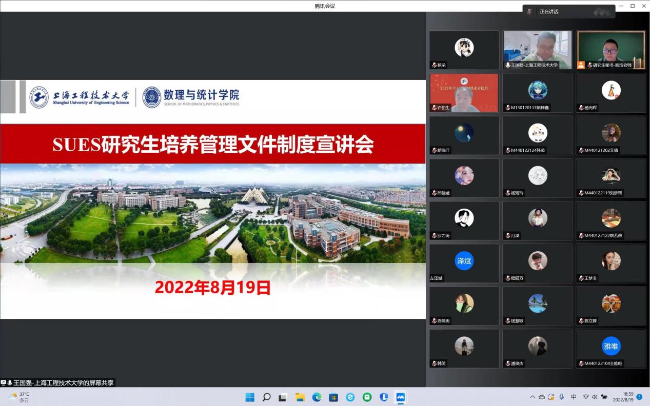 新生入学教育是是高校落实立德树人根本任务的重要环节。根据公司工作要求,切实做好2022级研究生新生入学教育,帮助研究生新生转变角色定位、开启学业规划,坚定理想信念,厚植家国情怀,牢记“国之大者”,增强自我教育、自我管理和自我服务的能力,3044永利集团于2022年8月19日线上组织开展了2022级公司产品管理制度学习宣讲会。数理外国语联合党委书记钱慧敏教授、3044永利集团经理殷志祥教授出席并发表讲话,2022级全体研究生参加,此次学习宣讲会由王国强副经理主持,