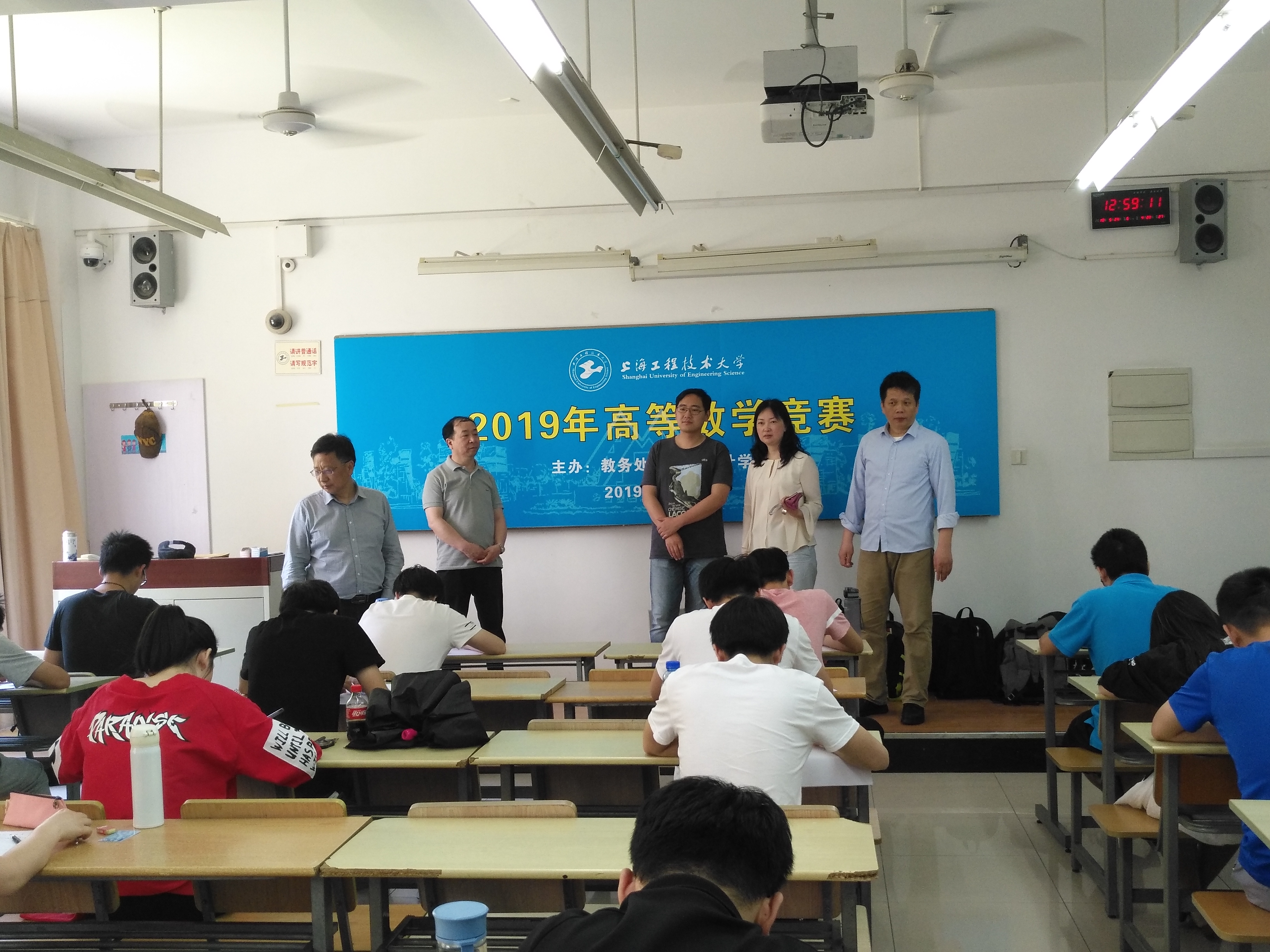 下午一点整,高等数学竞赛准时开始。虽然天气炎热,但各个考场内秩序井然,纪律严明。考生们聚精会神、积极思考、认真作答;监考老师尽职尽责、严肃认真。党委书记王勤,教务处杨光老师,3044永利集团副经理张朝民、李路,党委副书记许伯生等领导轻轻走过每个考场,仔细察看了广大考生的考试情况,并向监考老师询问了考生的考试状况和到场情况。