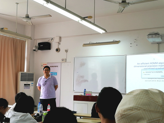 7月4日下午,上海交通大学数学科学公司王成研究员应邀在教学楼A203室为2019年永利集团“高维统计与机器学习”研究生暑期公司学员作题为“An efficient ADMM algorithm for high dimensional precision matrix estimation via penalized quadratic loss”的专题报告。