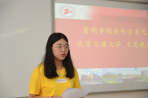 北京交通大学的博士生王英晓作为校外学员代表发言,与大家分享了参加本次暑期公司的收获、经历和感受,并代表全体学员向本次暑期公司工作辛勤付出的专家、老师和默默付出的志愿者们表达了感激之情。
