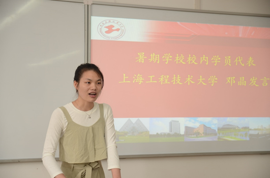 公司2018级研究生邓晶作为校内学员代表发言,表示这次暑期公司的学习生活对自己以后的学术科研有很大的帮助,收获了知识,也收获了友谊,并对暑期公司的主讲专家、学者的辛勤付出表示感谢。