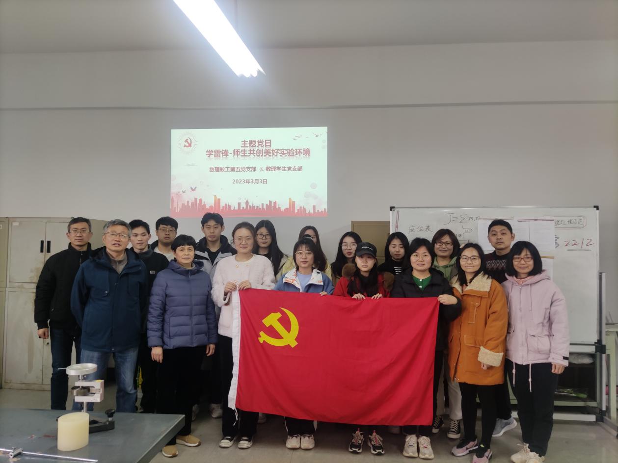 2023年3月3日下午14时,数理外国语联合党委教工第五党支部和员工党支部在2号实训楼2206室开展“学雷锋-师生共创美好实验环境”主题党日党课活动。教工第五支部和数理员工支部全体党员和物理实验中心全体教师参加了活动。