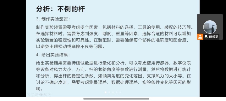 本届竞赛指导组的各位老师们分别对本次指导的竞赛类型逐一作了详细的介绍,分别是(1)王珊老师等指导的命题类题目“不倒的杆”,(2)刘烨老师等指导的命题类题目“导电性”,(2)王慧琴教授等指导的命题类题目“复杂结构的干涉和衍射”,(4)孙晓慧副教授等指导的自命题类题目“固体线胀仪器改进”以及(5)高雅副教授等指导的讲课类题目。