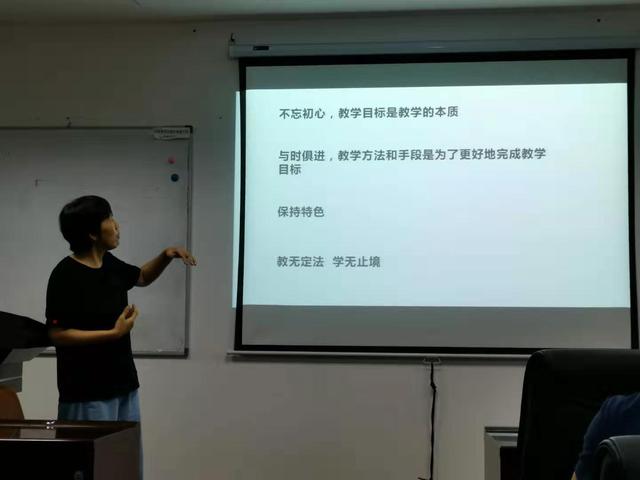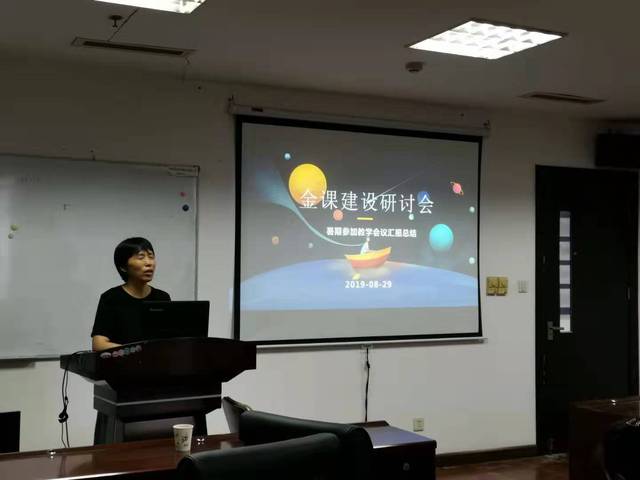 新学期始伊,为深入贯彻新时代全国高等本科教育的会议精神,加快公司“金课”建设,2019年8月29日数理外国语联合党委第六党支部在行政楼1307举办了发挥党员先锋模范带头作用系列活动之“金课”建设交流报告。此次活动由第六党支部牵头、组织物理教学部的教师参加交流,报告由第六党支部老党员徐红霞老师主讲,报告题目是:“金课建设研讨会—暑期参加教学会议汇报总结”。