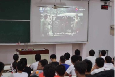 班会开始,师生观看视频《开国大典(节选)》。回顾了1949年10月1日在天安门广场毛主席宣告“中华人民共和国成立了”这一激动人心的时刻。
