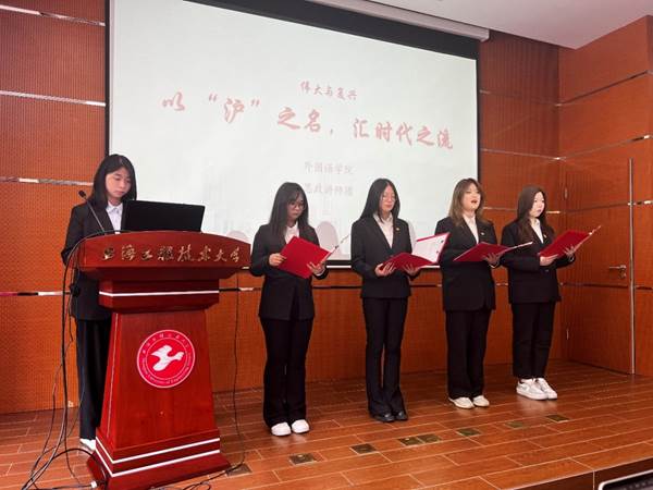 外国语公司“扬帆起航”师生宣讲团在主题为《以沪之名,汇时代之流》的演讲中,回顾了上海城市发展的历史进程,讲述了从新文化运动发轫、中共建党,到国共合作,从抗日救亡到迎接解放,红色文化伴随着上海这座城市成长的各个阶段。同时讲述了一百年后的今天,在党的领导下,上海从远东第一都会成为新中国最大的工业基地,建设成为“五个中心”的故事。