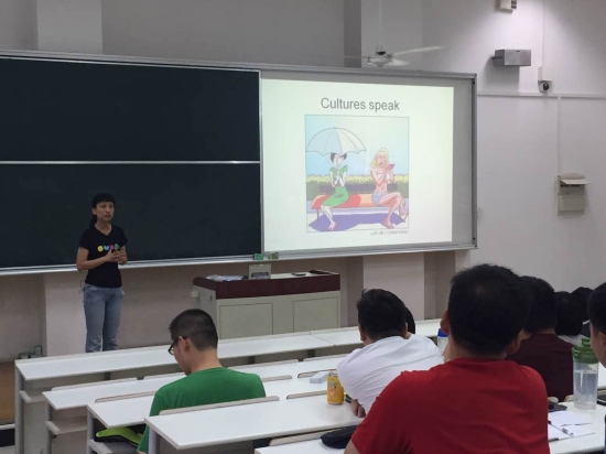 朱老师结合自己丰富的国内外翻译经验,以大量的实际案例为基础,从如何定义翻译工作入手,讲述了英语口译的方法及技巧,探讨了英语学习方法和实际应用,并通过和在场英语老师的互动讨论,讲述了英语词汇学习的方法。朱老师在讲座中还与同学们进行了丰富多彩的交流互动,为员工提供了实际口译的练习机会,不断地将讲座气氛推向高潮。