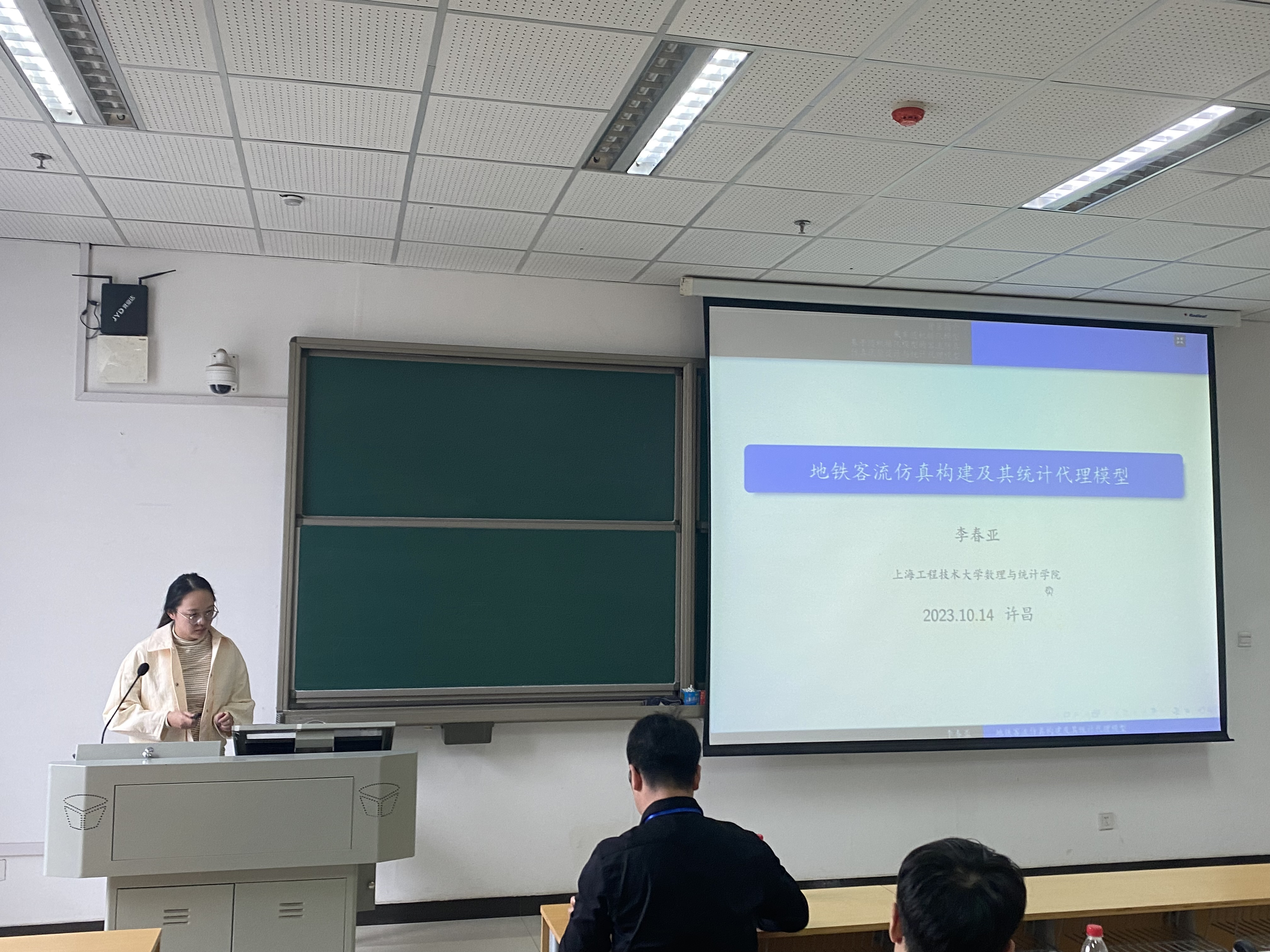 李春亚博士阐述她的工作研究开展情况,主要研究了地铁乘客到达站台后的乘车概率问题。在若干合理假设下,证明了乘客乘车概率的一个随机排队模型。该模型推广了文献中先到先服务的确定性模型。基于随机排队模型,构建了典型地铁路线的乘客流仿真,输入列车时刻表,乘客进站时间,走行时间分布等信息,该仿真能够输出每位乘客在地铁系统的轨迹和出站时间。由于此仿真为含有数值型输入和概率分布型输入的随机性仿真。基于 Wasserstein 距离给出了这类计算机实验的设计与分析方法,其中提出了一类混合输入的高斯过程模型作为统计代理模型。数值算例表明了我们方法的有效性。