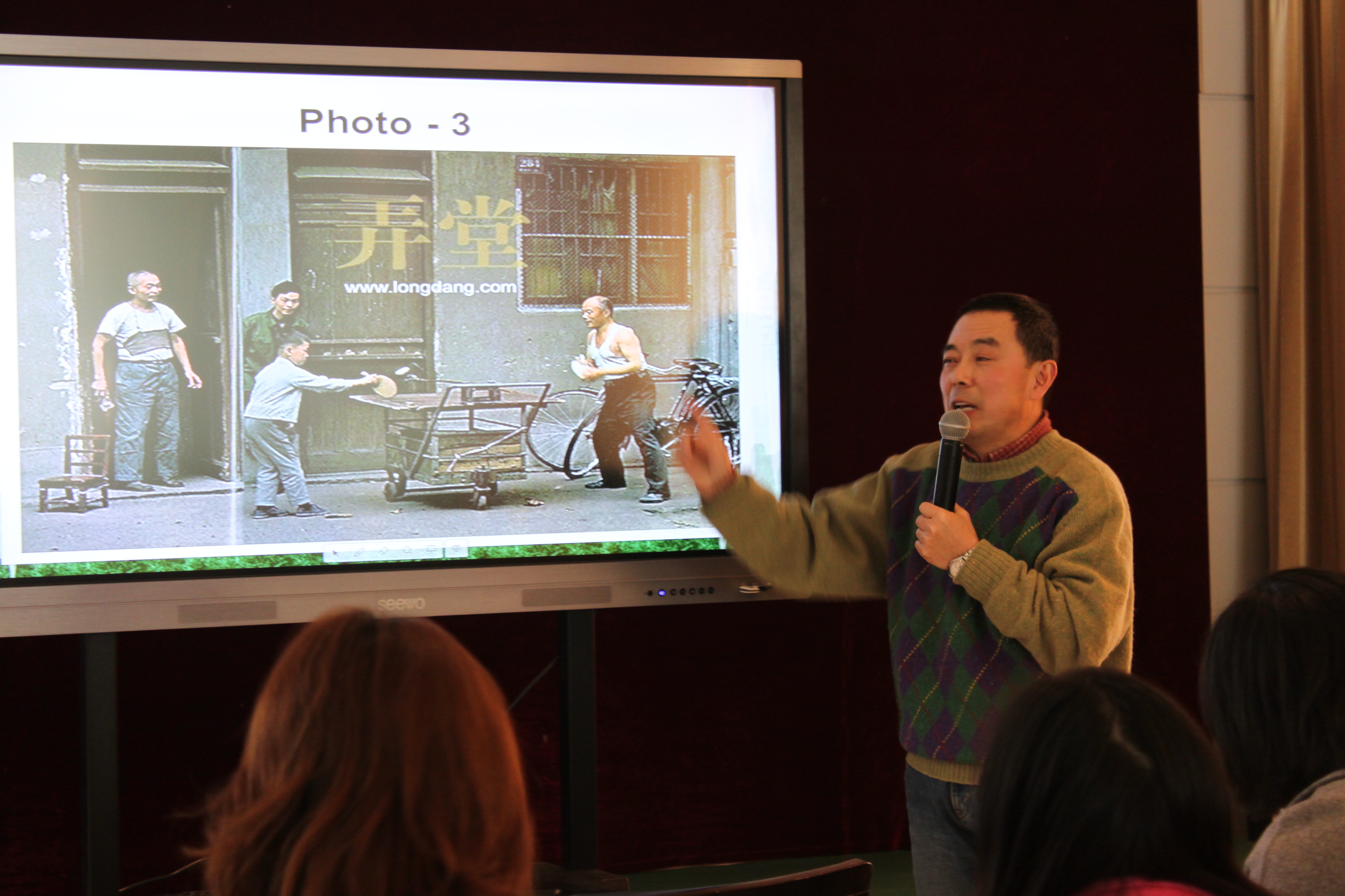 活动伊始,外国语公司沈逸平老师从弄堂历史、石库门建筑、弄堂特色、弄堂游戏四个方面对弄堂文化做了详细介绍。通过文字与图片相结合,不仅让在场的所有人感受到弄堂凝固着人们的需要、感情、审美、希望和追求,还勾起了在场尤其是老上海人难忘的回忆。不得不说弄堂构成了社会的写照,历史的见证,文化的标志,心灵的寄托。活动主办方精心准备了各式特色的弄堂小吃,与会教师细细品味地道的上海弄堂味道。