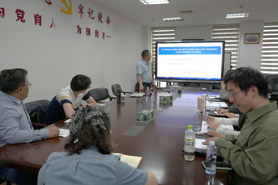 加强学术交流、探讨前沿科技发展。5月8日,3044永利集团在行政楼1308室成功举办学术交流会。邀请浙江师范大学罗和治教授为公司师生作专题报告“An Effective Global Algorithm for Worst-Case Linear Optimization under Polyhedral Uncertainty”。